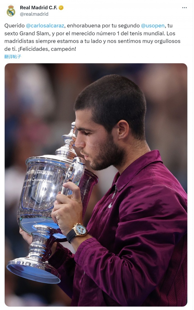 皇马皇马社媒晒出阿尔卡拉斯亲吻奖杯的相片欧洲买球体育信息,配文:“亲爱的阿尔卡拉斯,祝福你取得第二个好意思网冠军,你的第六个大满贯,以及实至名归的天下网球排行第一。咱们皇马东说念主恒久复旧你,为你感到无比骄矜!祝福你,冠军!”