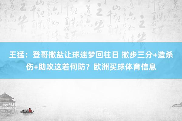 上一篇:王猛:登哥撒盐让球迷梦回往日 撤步三分+造杀伤+助攻这若何防?欧洲买球体育信息