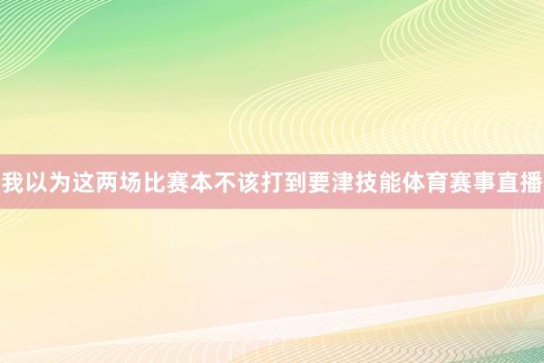我以为这两场比赛本不该打到要津技能体育赛事直播